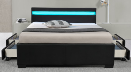 Name : Sunny LED Upholstered Black PU Fabric Bed Frame With Storage Drawers
