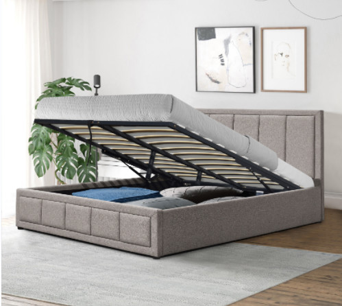 Upholstered Double Size 4ft6 Bed Frame Headboard Lift Up Storage