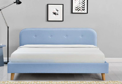 Fabric Upholstered Plywood Blue Colour Bed Frame Modern Fashion