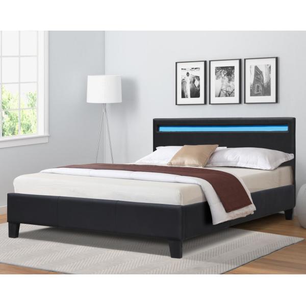 Double Size Leather Led Upholstered Bed For Modern Bedroom Images |